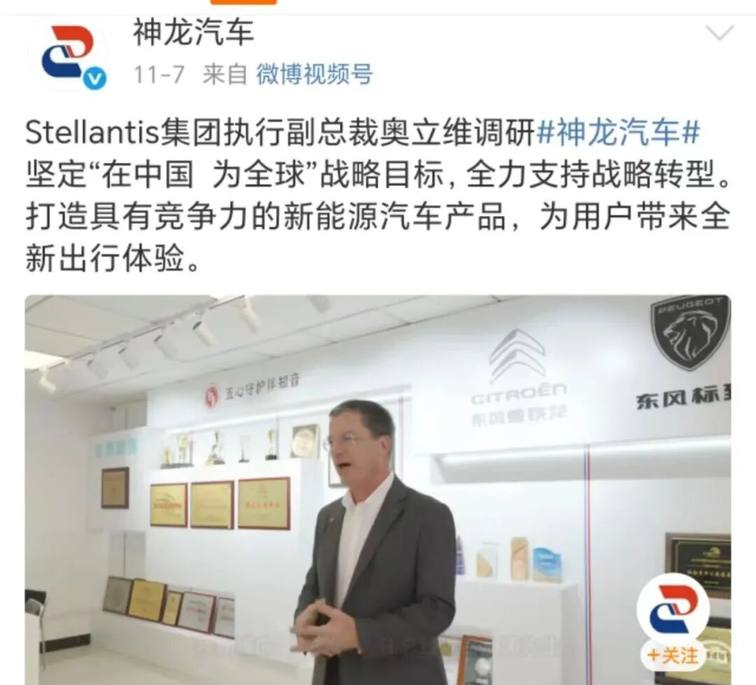 11月7日,Stellantis集团执行副总裁、中国及亚太区负责人奥立维调研神龙汽车,明确表示力挺“在中国 为全球”战略,支持新领导团队再创辉煌。