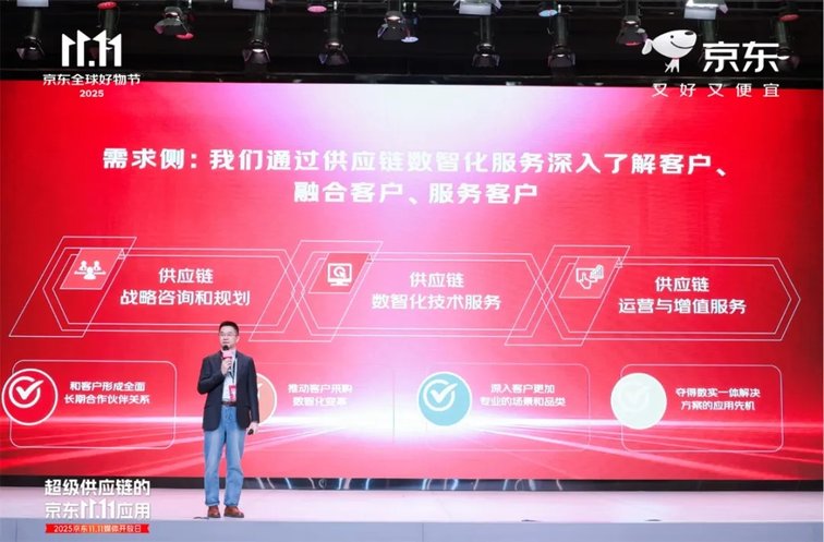 11月11日,2025京东11.11媒体开放日在北京举行。作为一家以供应链为基础的技术与服务企业,京东的发展与创新紧紧围绕“供应链”这一核心,基于二十多年来锤炼的供应链基础设施能力,以科技创新助力现代化产业体系建设,展现超级供应链的京东11.11的应用成果。