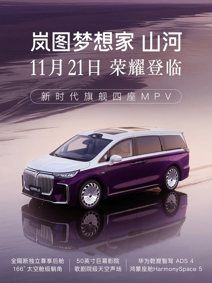 首款新时代旗舰四座MPV岚图梦想家山河将于广州车展上市