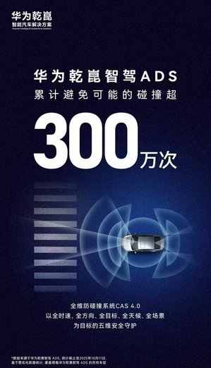 截至目前,华为乾崑智驾累计避免可能的碰撞更超过300万次,为用户构建了全方位的安全守护。