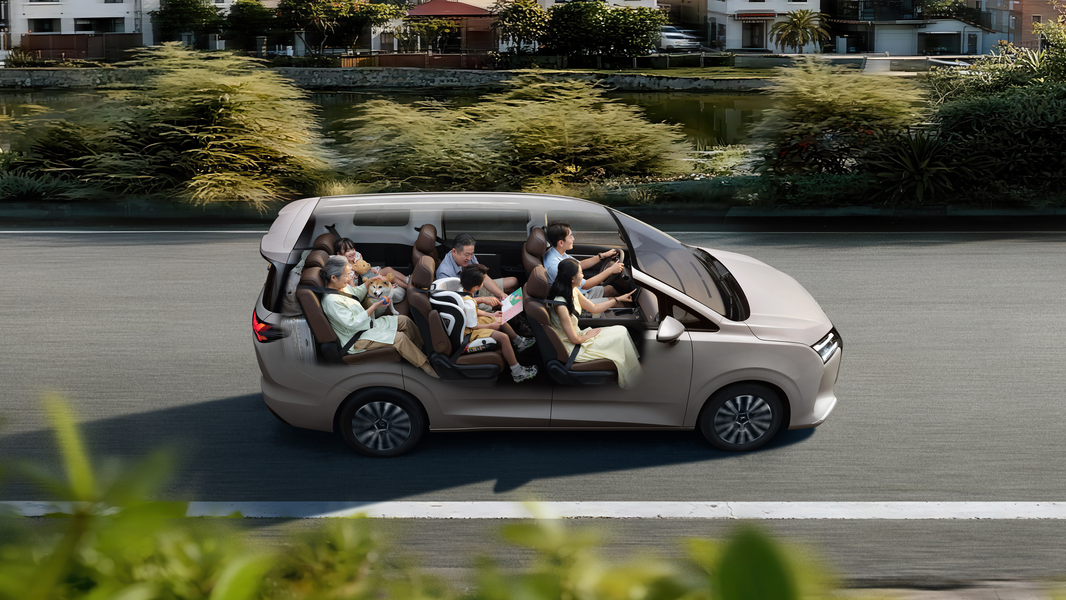 说到舒适,它直接刷新“家用人设”!同级最大空间,座舱长3331毫米,肩宽1500毫米,第三排高度超1.2米——坐满七口人,腿能自由伸展,久坐不累。魔术翻折设计的第三排,一收一放,后备厢秒变1202升“大胃王”,七人行李轻松塞进去。还有同级唯一的电滑门(选装只要3000元哦),狭窄车位不怕“开门杀”,老人小孩借力B柱拉手上下车,安全又贴心。王祖蓝夫妇在发布会现场亲测后都说:“这就是我们亲子出行的梦之车!”