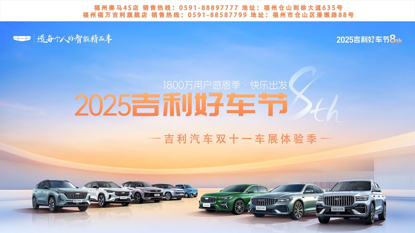 2025吉利好车节,好车3.99万元起,置换补贴至高20000元(另享国补),试驾免费抽8888元锦鲤购车金。