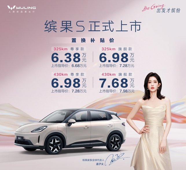 缤果S 430km旗舰款:上市指导价7.98万元,置换补贴价7.68万元;