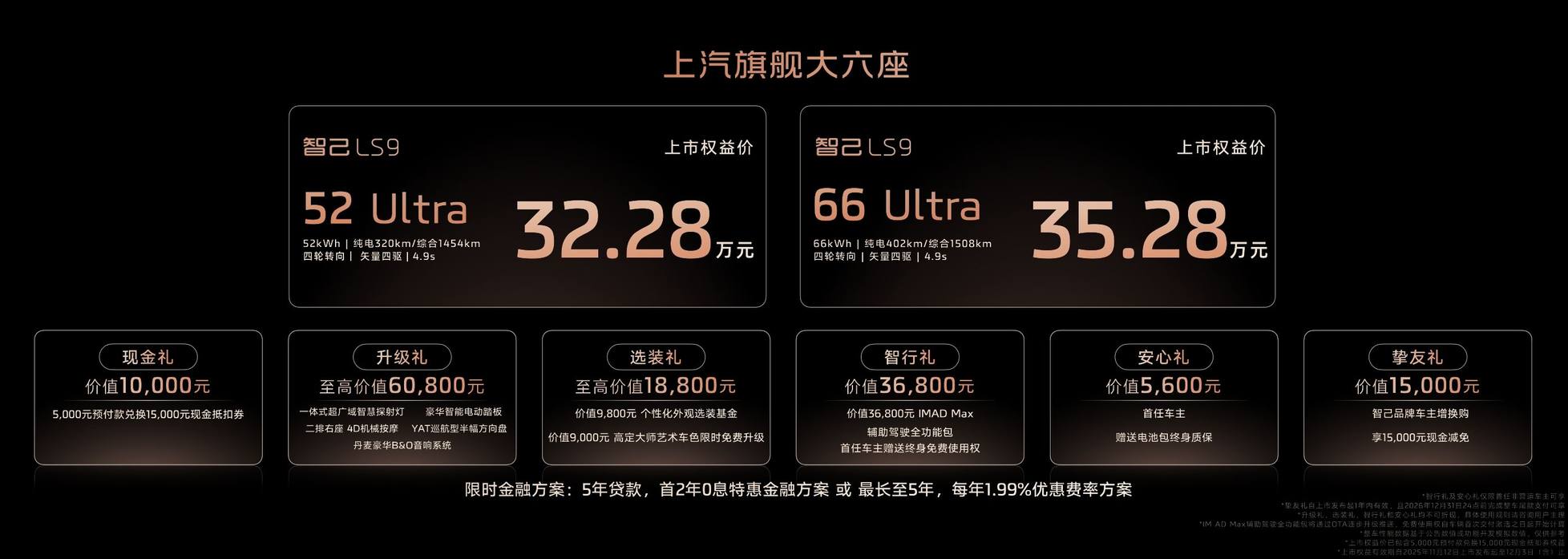三、32.28 万定价,击穿旗舰配置的价格底线智己 LS9 的定价逻辑,本质是 “用入门价卖顶配”: