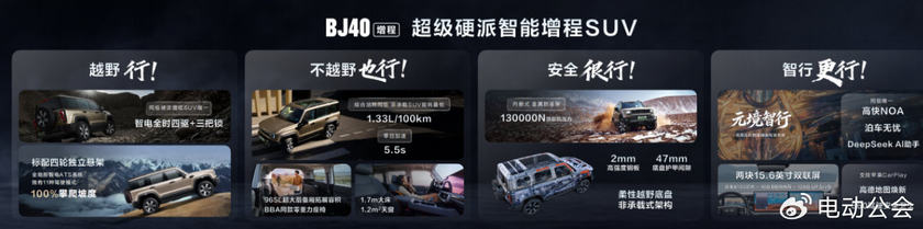 硬派SUV,先看增程;硬派增程SUV,就选北京越野!北京越野将坚定不移地走增程技术路线,让硬派增程SUV从“小众之选”成为“主流趋势”。
