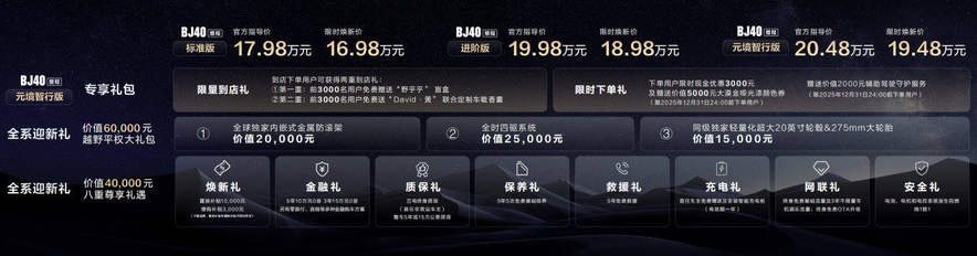 在汽车产业电动化与智能化浪潮奔涌的今天,北京越野以一场充满魄力的产品发布,为硬派SUV市场注入了全新活力。11月13日,BJ40增程元境智行在国家网球中心正式亮相,以20.48万元的官方指导价和19.48万元的限时焕新价,将硬派越野与智能科技完美融合。这款被誉为“硬派增程SUV智行之王”的产品,不仅延续了品牌深厚的越野基因,更在智能驾驶、安全技术与舒适配置上实现全面突破,标志着硬派SUV正式迈入智能出行新时代。