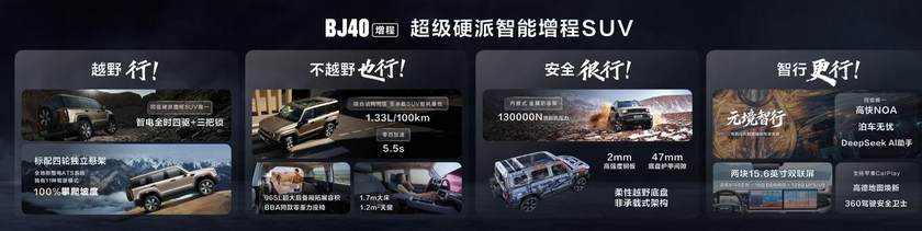 BJ40增程元境智行版的成功,证明硬派越野与智能电驱并非对立,而是共同指向用户真实需求的最优解。随着"野乎乎"IP从沙漠扩展至雪场(滑雪版盲盒已推出),以及2025广州车展概念车的预热,北京越野正持续拓宽硬派增程的想象空间。正如其品牌宣言:"硬派SUV先看增程,硬派增程SUV就选BJ40增程。"这场由性能突破、智能革新、安全重构共同驱动的进化之旅,才刚刚开始。