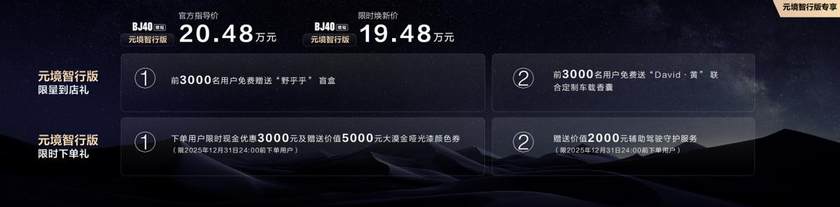 限时焕新价19.48万元,BJ40增程元境智行版硬核上市