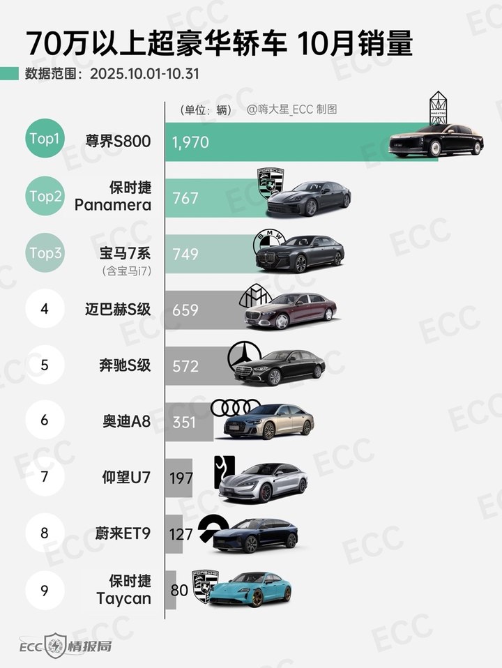 2025年10月的汽车交付数据陆续出炉,当主流市场沉浸在一众“破万”、“破两万”的喧闹中,有一个数字看似低调却极具分量——尊界S800,单月交付1970台,在超豪华车市场,这是足以颠覆行业的硬核成绩!
