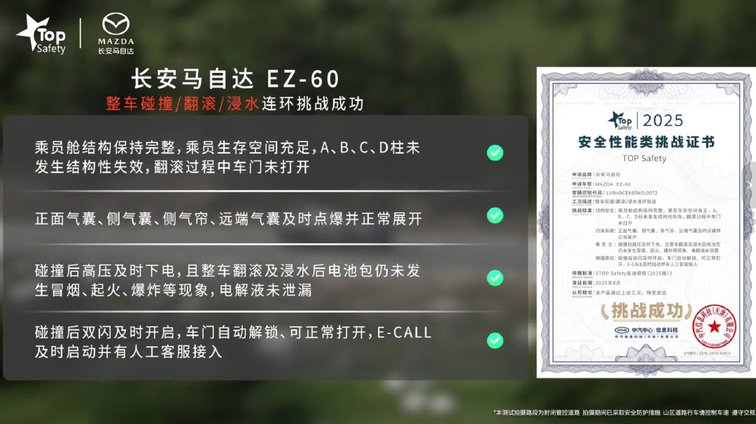长安马自达提出“双百翻番战略”(投入百亿、出海贸易额百亿、产值翻番),而南京工厂,正是这一战略的支点——它不仅是制造基地,更是全球新能源整车出口中心。EZ-60的兄弟车型EZ-6已率先获得中欧双五星认证,并登陆欧洲、布局澳洲。EZ-60的未来,也注定是一条全球化的征途。