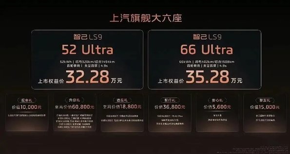 近日,智己汽车旗下首款大六座SUV——智己LS9正式上市。新车共推出52 Ultra和66 Ultra共计2款车型,售价分别为33.28万元和36.28万元,上市权益价分别为32.28万元和35.28万元。作为对比,新车预售价分别为34.69万元和37.69万元,权益价分别为33.69万元和36.69万元。相比之下,新车最终权益价下调了1.4万元左右。