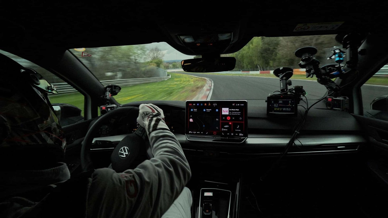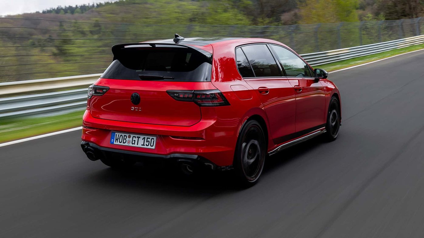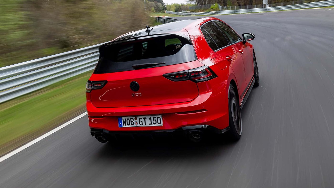 这是一辆接近量产状态的测试车,创下了新纪录——从未有一辆合法上路的大众车在北环跑得更快。不过,想拿下紧凑型车的绝对圈速纪录还差一点——这项纪录依然由搭载四驱系统的同门兄弟奥迪RS3(7分33秒123)保持。