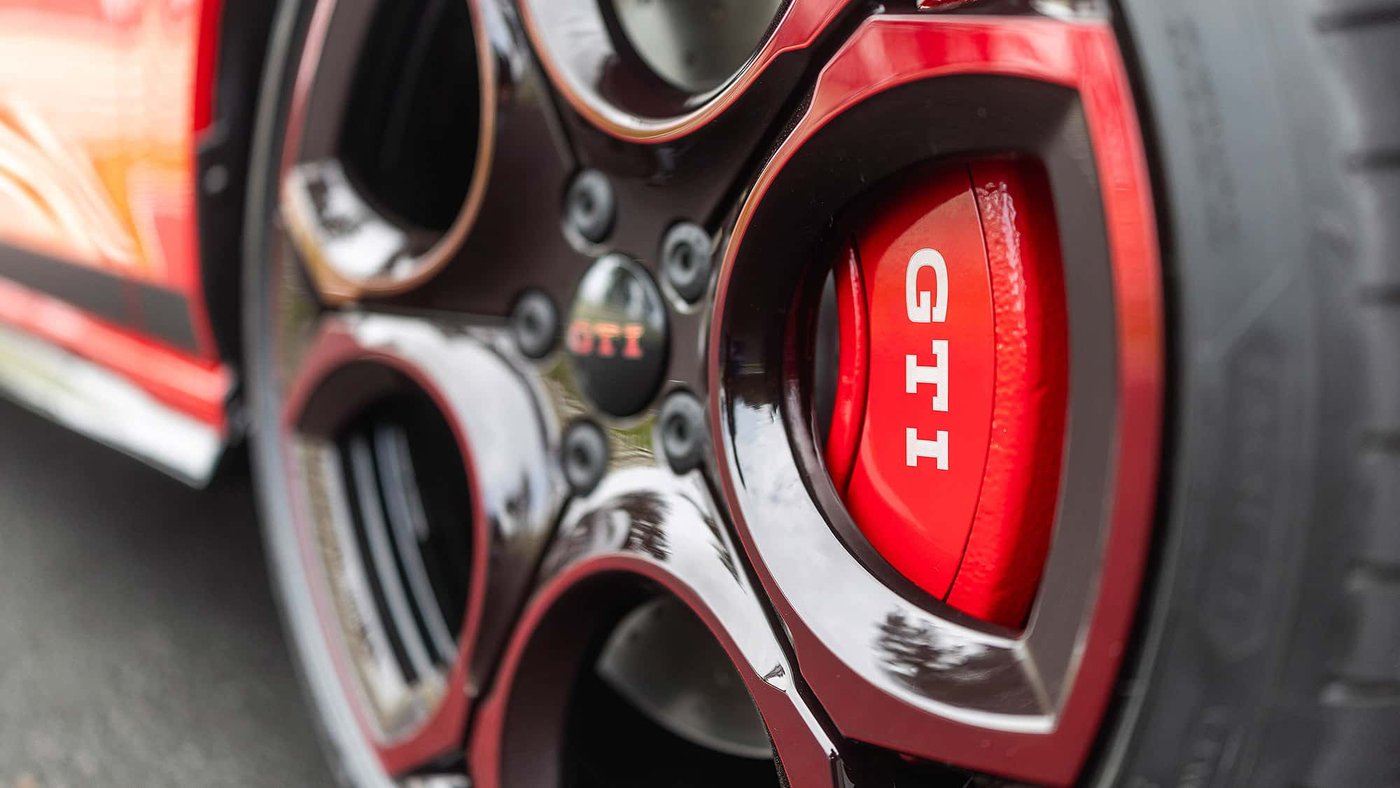 值得一提的是,GTI 50周年纪念版还可选装GTI Performance套件,不仅通过更轻了11公斤的天蝎钛合金排气系统实现轻量化,还对底盘进行了大幅升级:前轴采用新的转向节,使外倾角增加2度;前部使用更硬的弹簧、横臂与支柱衬套;后部采用不同的轮毂支架;额外降低车身5毫米。