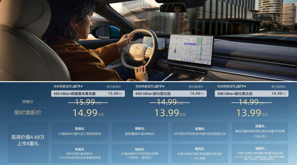 焕新价13.99万起 ,零百3.7秒!东风奕派eπ007+ 标配激光雷达
