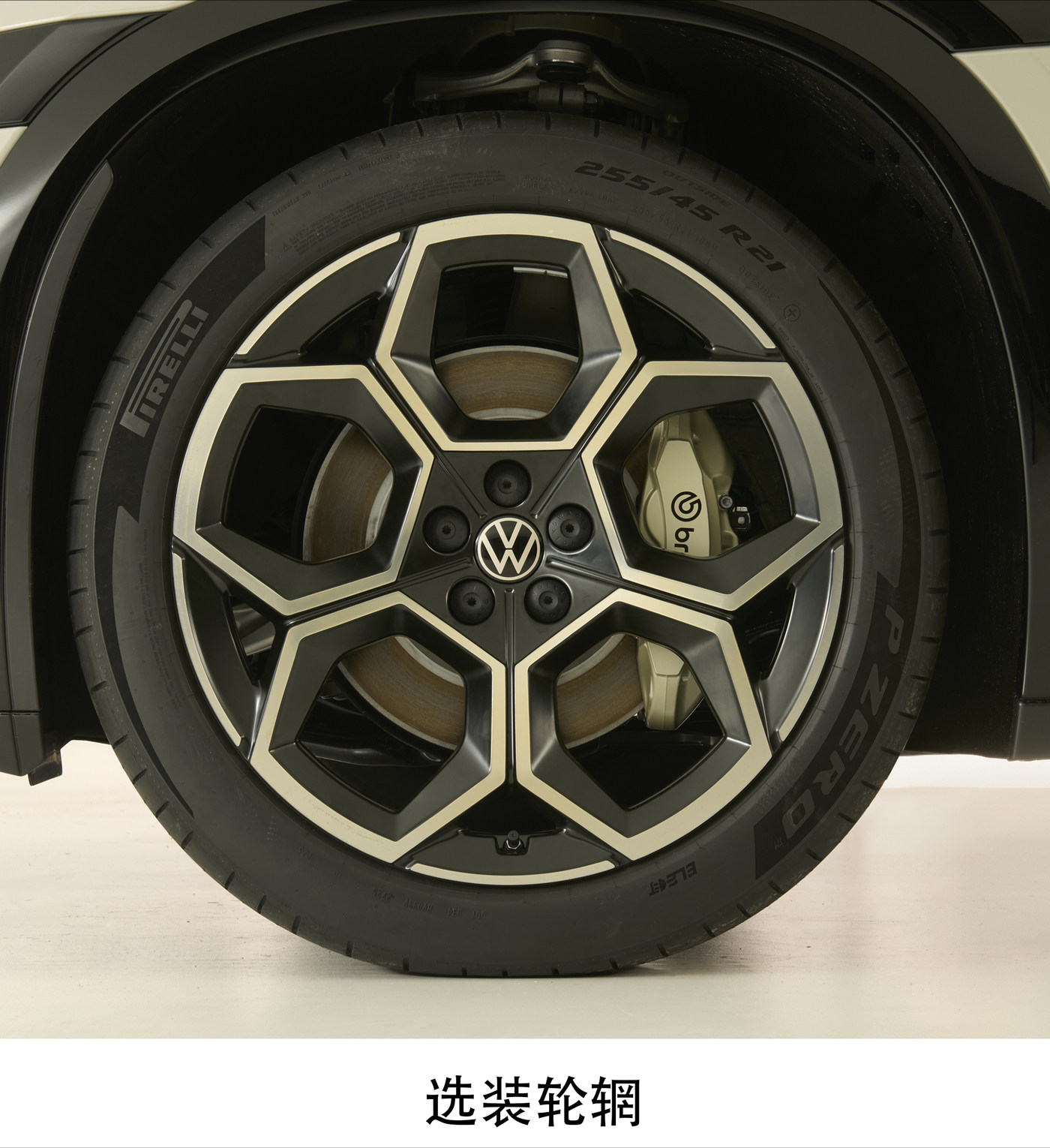 在颜值层面,与众08还是首款采用了大众全新设计语言的纯电车型,与众08采用了前卫、大胆、不拘一格的外观设计。短前悬和长后悬的独特车身姿态、无框车门设计、遍布车身的金色元素、集成了沃尔夫斯堡狼头标志的高位刹车灯等细节为与众08这款全尺寸纯电SUV营造出了富有运动感且张力十足的外观设计。