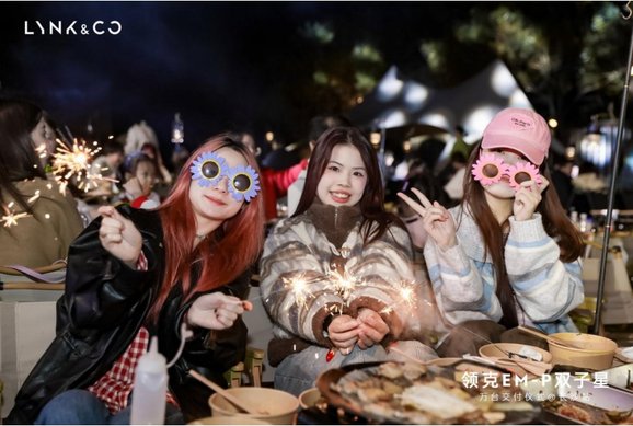 随着夜幕降临,篝火烟花音乐派对开启。大家享用美味烧烤,围绕炽热的篝火畅谈。当音乐响起,烟花点亮夜空,现场瞬间化为一片欢乐的海洋。这一刻,用户与品牌的情感连接得到升华,从用户变为家人,共同组成了一个以热爱为纽带的领克大家庭。