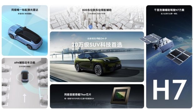 全新领克08 EM-P是同级唯一全系标配激光雷达的插混SUV;也是全球首款搭载Thor芯片的中型SUV车型,采用目前行业最先进的4nm制程,算力高达700TOPS,为复杂路况下的精准感知与决策提供强大支撑。依托中国车企算力第一、全球第三的吉利星睿智算中心2.0云计算平台,为辅助驾驶训练、智能座舱迭代和大模型推理提供了更加全面的支持。