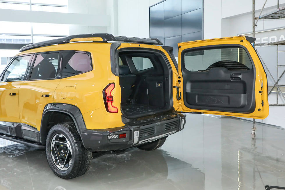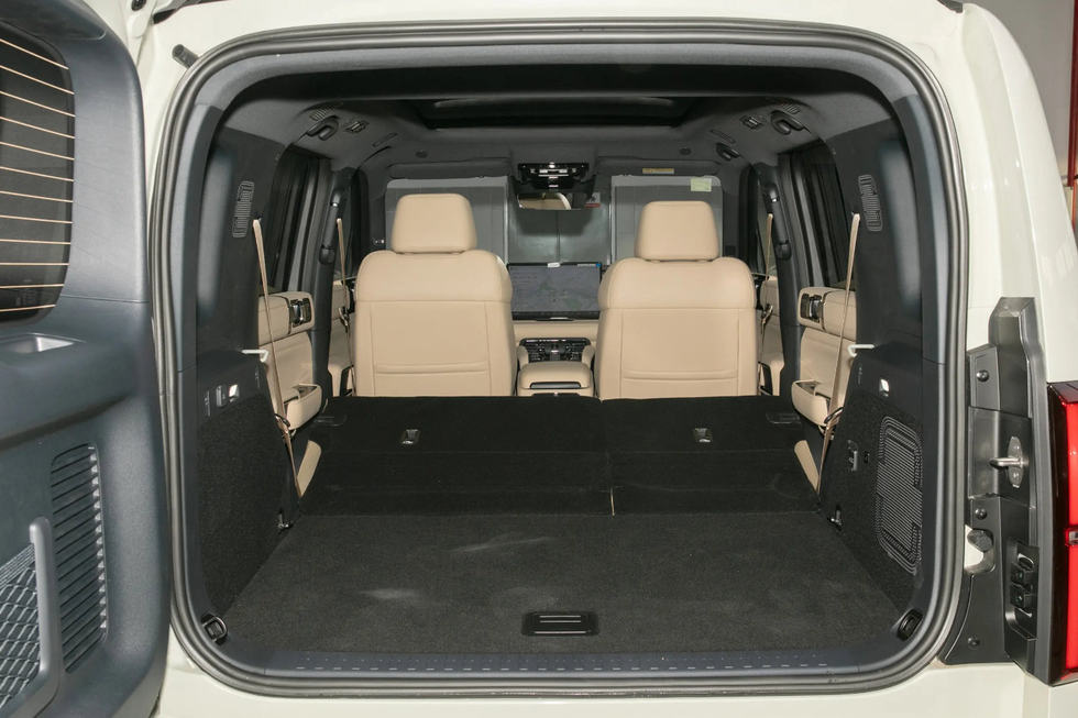 装载与拓展更是深蓝 G318 的 “强项”:常规后备厢 818L,后排放倒后能拓展到 1747L,我们试过,装下 2 个 28 寸行李箱 + 1 个露营帐篷 + 1 套烧烤架后,还能留空间放零食袋;外放电功能更是实用,比赛中成功驱动热水壶、探照灯、咖啡机同时工作,日常露营时煮火锅、烤串都没问题。再加上能动态承重 80kg 的专业行李架(可装车顶帐)、伸缩式前拖钩(应急救援用)、前机舱 130W 预留电源(接 GoPro 拍沿途风景),这些拓展功能让 “户外露营” 从 “麻烦事” 变成 “轻松享受”,而这正是方程豹豹 5 难以企及的。