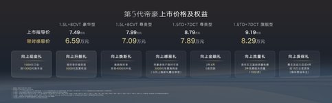 第5代帝豪上市,限时售价6.59万元起,主打“油电同智”