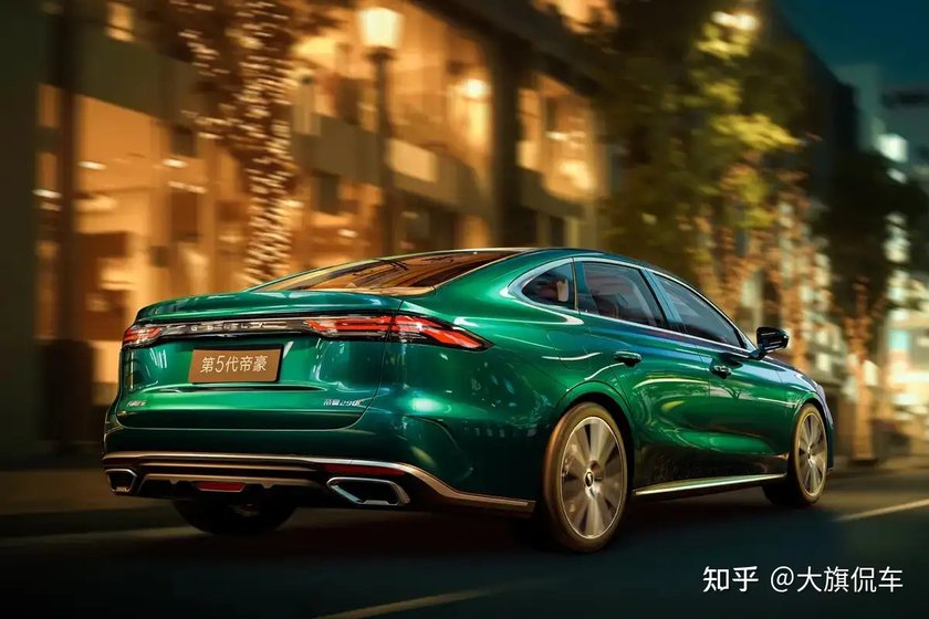 贯穿式的车身筋线搭配上扬式的底部线条,双五幅式的轮毂加持,为整车带来舒展且运动的轮廓;车尾处则略带熏黑的贯穿式尾灯组搭配尾箱上方小鸭尾造型,包围底部还设计有双出矩形排气,显然这次第5代帝豪更适应年轻家庭用户需求。