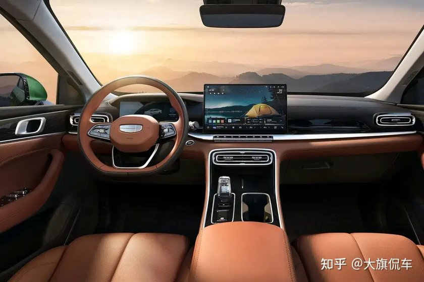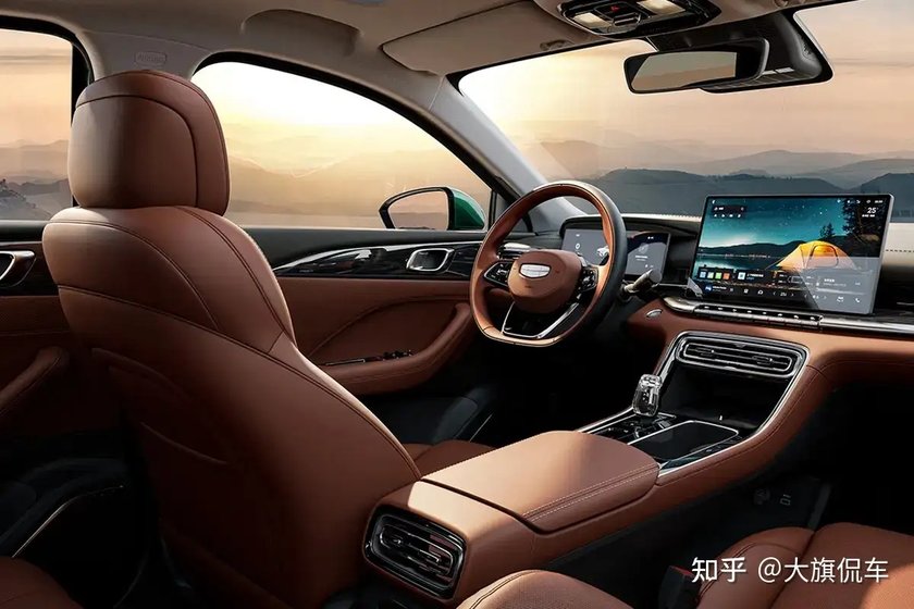 实际上不仅外观,第5代帝豪内饰也迎来全新的设计,座舱造型相较2026款吉利帝豪则要更加舒展,镶嵌式液晶仪表搭配悬浮式车机大屏,整体车内科技感营造更为突出;同时大面积的皮质材料包覆配合上电子挡把等设计,也让整车内部高级感更为明显。