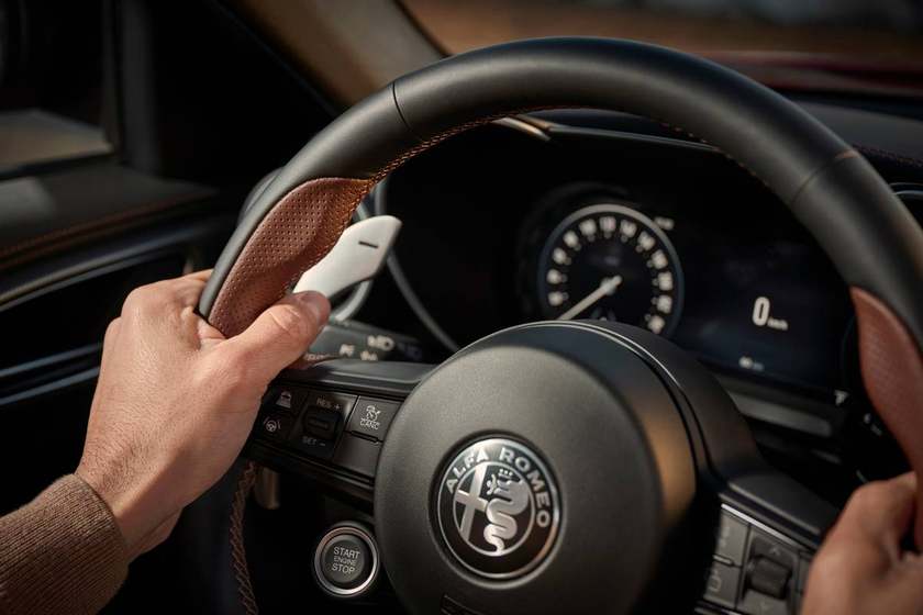 Giulia INTENSA配备19英寸双色钻石切割合金轮毂,带金色哑光饰面,以及饰有金色细节的黑色制动卡钳,此处的细节设计源于传奇超跑33 Stradale。后视镜盖饰有意大利国旗。车漆颜色新增四叶草车型独有的Rosso Etna颜色,品牌标志性的红色漆面中透出鎏金光泽,以种种细节设计向传奇致敬,诠释意式性能美学。