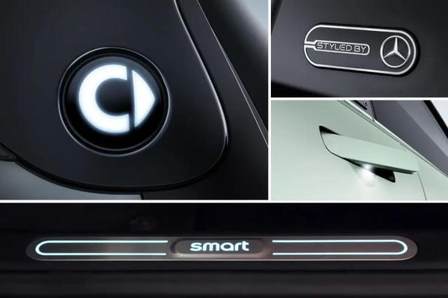 作为奔驰旗下的品牌,smart自然也注重豪华感的延伸,D柱发光Logo、隐藏式电动外门把手 Logo、Styled by Mercedes Benz logo、后视镜 Logo 照地灯等细节越品越有味道,充满仪式感。内饰部分也充满了胶囊元素,该元素也延续了奔驰家族的豪华设计语言,显得年轻有活力,同时也避免了那些套路型设计。