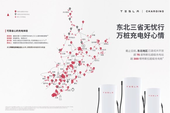 另从特斯拉官网处获悉,截至2025年11月,特斯拉在东北三省已建成并开放82座超级充电站,341根超级充电桩,以及32座自营目的地充电站,74根目的地充电桩。并在全国已累计部署2300多座特斯拉超级充电站、12000多根特斯拉超级充电桩,640多座特斯拉目的地充电站、2300多根特斯拉目的地充电桩。