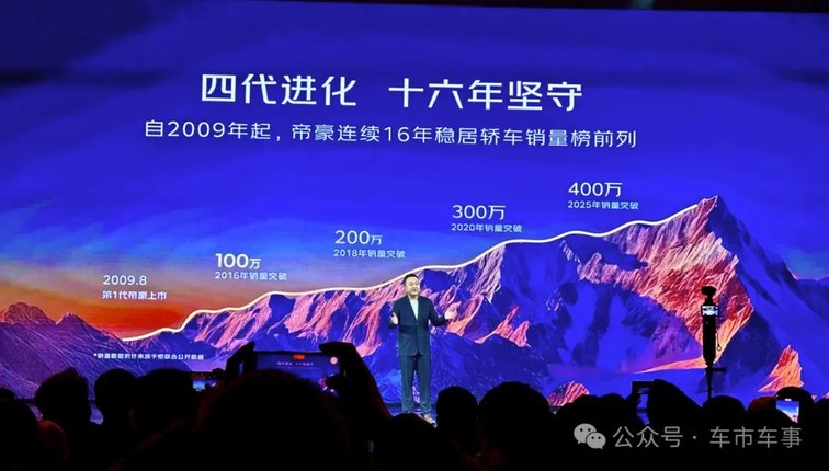 至2025年,帝豪已连续16年稳居轿车销量榜前列,是唯一突破400万销量的中国家轿,这个数字,相当于675座珠峰的高度,1651艘航母甲板的宽度。