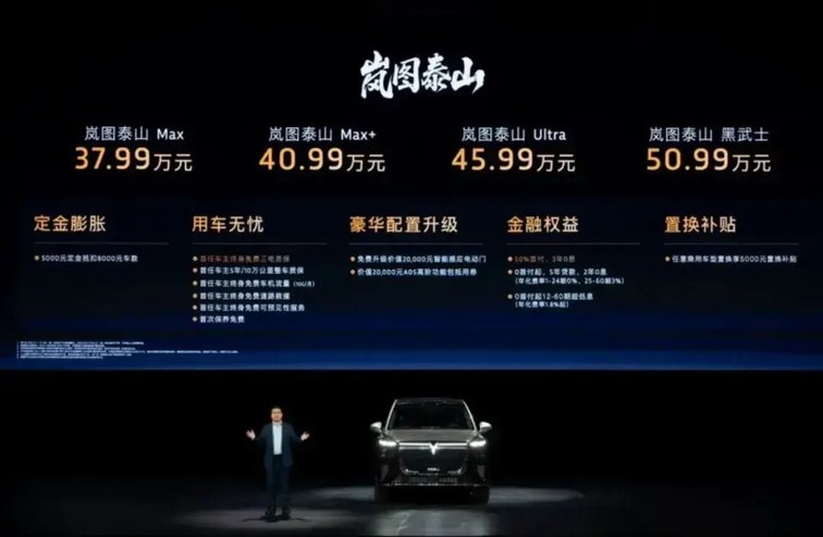 更重要的是,在价格战甚嚣尘上的当下,岚图泰山反其道而行,不以降价换市场,而是以价值赢尊重。37.99万元的起售价叠加“高配中价”的策略,彰显了岚图重塑市场价值体系的决心。