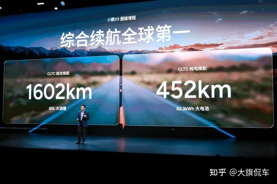小鹏X9超级增程摒弃传统增程小电池+大油箱的组合方案,以“大油箱+大电池”领先组合,实现CLTC综合续航1602km、纯电续航452km的双重突破,成为全球续航最长大七座。在媒体实测中,其续航表现稳居全能源大七座榜首,远超同级竞品。