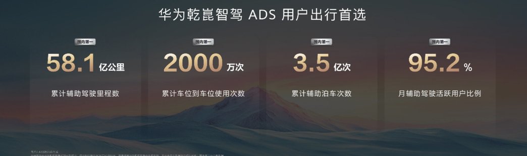 华为乾崑智驾 数据显示:截至2025年10月底,华为乾崑智驾累计辅助驾驶里程已达58.1亿公里、车位到车位累计次数超2000万次、累计辅助泊车次数达3.5亿次,月活辅助驾驶活跃用户比例达95.2%。