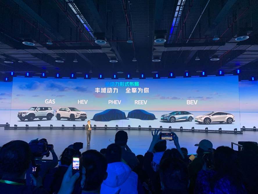 一汽丰田的策略清晰明了:用双擎更好的动力和更低的油耗去和纯燃油竞争,同时在纯电、插混、增程方面,也多重落子。