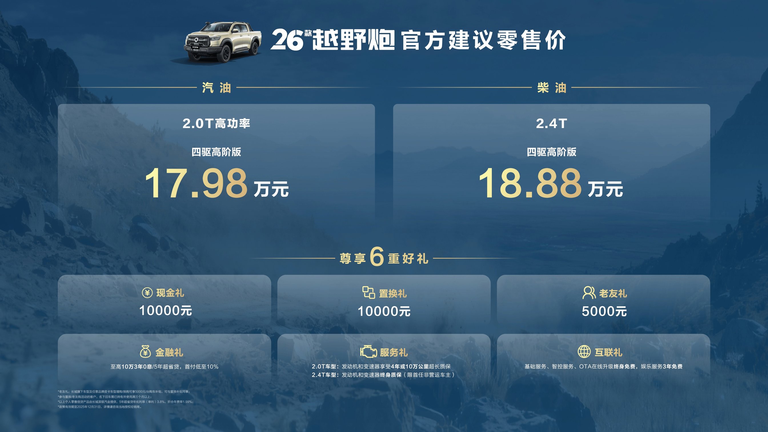 千锤百炼实力再进阶!2026款长城炮焕新上市9.98万元起