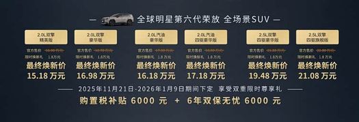 以上一代风尚PLUS2.0汽油版为例,售价为19.98万元;与之对应的全新荣放2.0L双擎豪华版,产品力大幅提升1.5万元,但定价却拉低1.2万元,较上一代产品综合价值提升接近2.7万元,官方售价为18.78万元。如在尊享预定期下定,叠加现金直给1.8万元的限时预定福利,最终焕新价低至16.98万元。在此基础上,还可享受6000元的购置税补贴以及价值6000元售后权益。