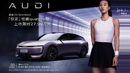 本次车展,上汽奥迪聚焦新能源赛道精准发力,以敏捷的行动,回应用户期待,重磅发布融合AUDI品牌代言人郑钦文个性主张与冠军精神的特别版车型——奥迪 E5 Sportback 钦定性能quattro型,限时臻享价27.99万元。用户仅需在先锋quattro型的价格基础上额外增加一万元,即可享受价值近五万元的顶级配置组合,轻松拥有极致可靠的驾驭和舒适豪华的体验。对于下单钦定性能quattro型的用户,品牌还将额外赠送价值5,000元的奥金商城积分或AUDI原装充电墙盒权益。
