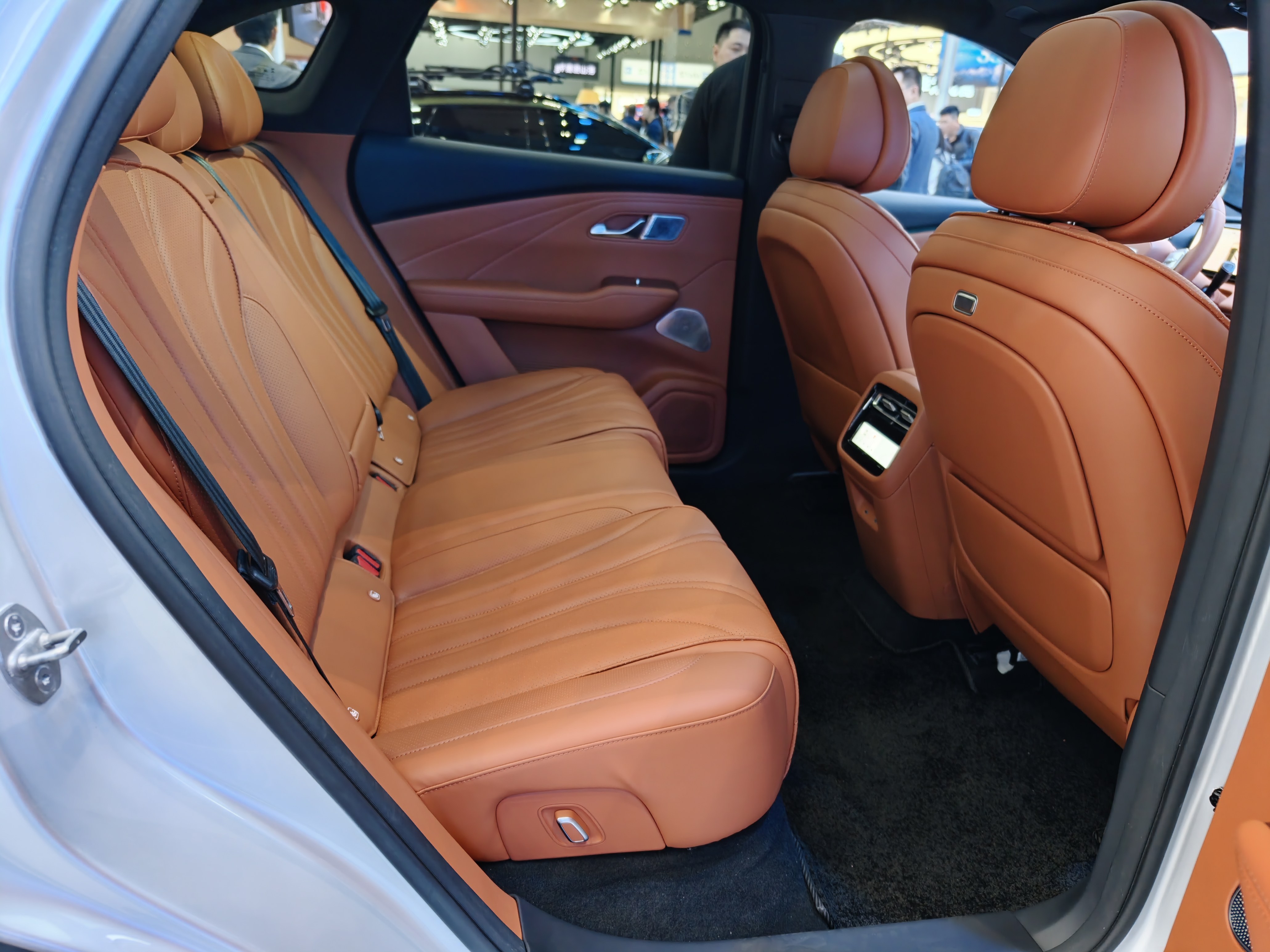 内部代号E06的风云T9L,拥有4820mm、1920mm和1685mm的三围,轴距则达到2920mm,远大于风云T9。从参数中不难发现,风云T9L的轴长比很高,通过短前悬、长L113把2米级的纵向空间留给乘员舱,给后排35°靠背省出调节位置。同时风云T9L侧面线条比例也很优雅,车顶在B柱后稍微下压,配合收紧的侧窗,形成动感的气质。一圈黑色护板降低视觉重心,配合半隐藏门把手、车顶行李架和低风阻轮辋,让风云T9L也有稳重的一面。
