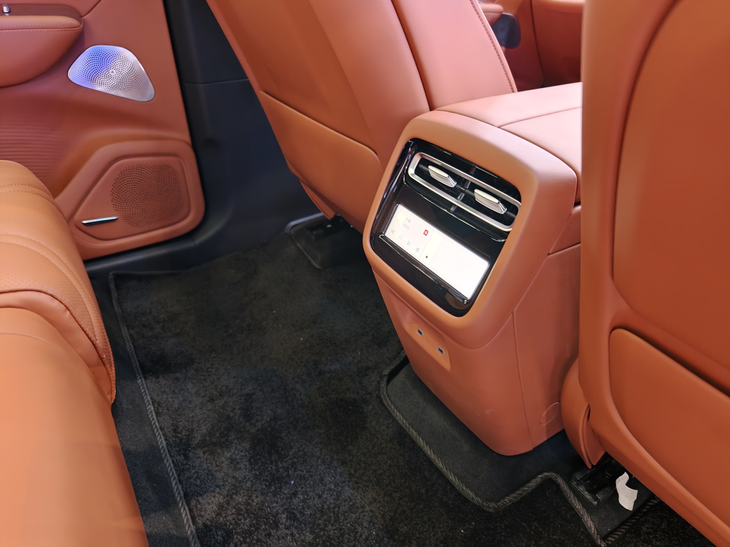 内饰部分,风云T9L填得比较满,T型布局有很强包裹感,橙色也是很多车企钟爱的选择。奇瑞不仅给它配置17.3英寸的2.5K中控屏,第二排也是同级唯一给到同尺寸屏幕的选择,加上23扬声器音响、-6°到50°冷暖箱,以及带通风、加热、按摩、腿托和大床模式的前排双零重力座椅,以及后排座椅加热、通风功能,也拥有了自己的“冰箱、彩电、沙发”。