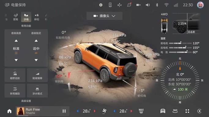 传承福特烈马家族的硬核基因,福特智趣烈马是同级唯一配备前后电控、机械差速锁的方盒子新能源SUV车型,全系标配四驱,增程版更配备了同级唯一的前后电控机械差速锁,独创行进中上锁功能,且不限速,脱困无比从容。即便是越野新手,在激光雷达、360°摄像头和底盘传感器、同级唯一的70英寸超大AR-HUD抬头显示系统加持下,福特智趣烈马的越野360系统可实时感知车身姿态,提前预警俯仰/侧倾角风险,大大提升安全性。更重要的是,在福特丰富的越野生态系统支持下,福特智趣烈马更具备同级唯一的智能旅行路书功能,支持酷炫3D卫星地图导航和路书智能推荐沿途兴趣点、最美拍摄地甚至无人机拍摄点,更可以语音实时播报,遇到路途中的美景,福特智趣烈马也可联动车身摄像头和传感器,随时记录分享,让每一次探索都充满惊喜。