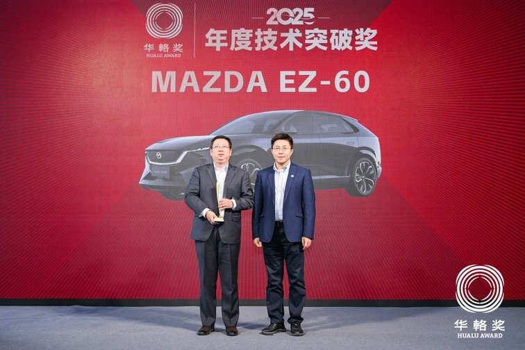 华南理工大学机械与汽车工程学院院长李巍华(右)为长安马自达汽车销售分公司客户增长部副总监邓翔宇(左)颁奖