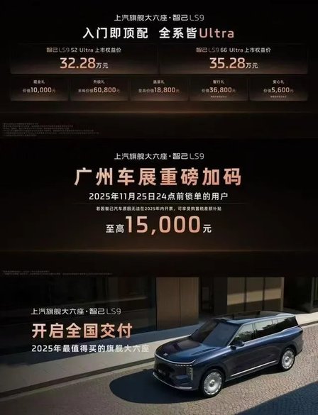 2025年11月21日,广州国际车展正式拉开帷幕。智己汽车携旗下两大重磅产品——“上汽旗舰大六座”智己LS9与“20万级最强爆品”新一代智己LS6强势登场,成为全场焦点。两款定位精准的超级增程SUV,凭借跨代际的技术优势和极具吸引力的价格权益,分别被市场视为30万级旗舰大六座与20万级智能大五座SUV的优选车型,引爆了展台人气。
