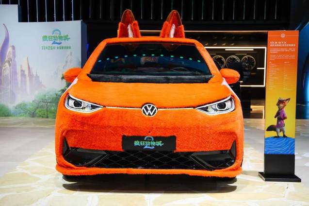 近日,大众汽车与迪士尼《疯狂动物城》官宣全球合作,上汽大众也在广州车展现场呈现了一款ID.3 GTX疯狂动物城2尼克定制展车,抓人眼球的亮橙色涂装、趣味十足的主题造型为车型注入新鲜活力,引来这部超级大作的粉丝争相前来打卡互动。