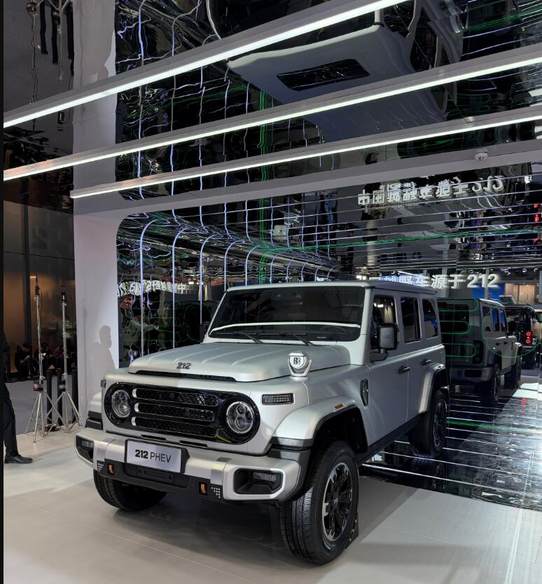 全新212 T01 PHEV在本次车展上首发亮相,将于2026年一季度完成上市。从设计的角度讲,这是一款典型的“方盒子”硬派SUV,新车跟汽油版车型相似,网状前格栅,搭配圆形双大灯,典型的复古经典派。