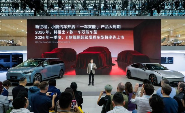 百万台只是起点,小鹏的野心藏在“一车双能”战略里。何小鹏在发布会上明确表示,2026年将推出7款“纯电+超级增程”双能车型,全面覆盖不同细分市场,其中一季度就有3款鲲鹏超级增程车型率先上市。