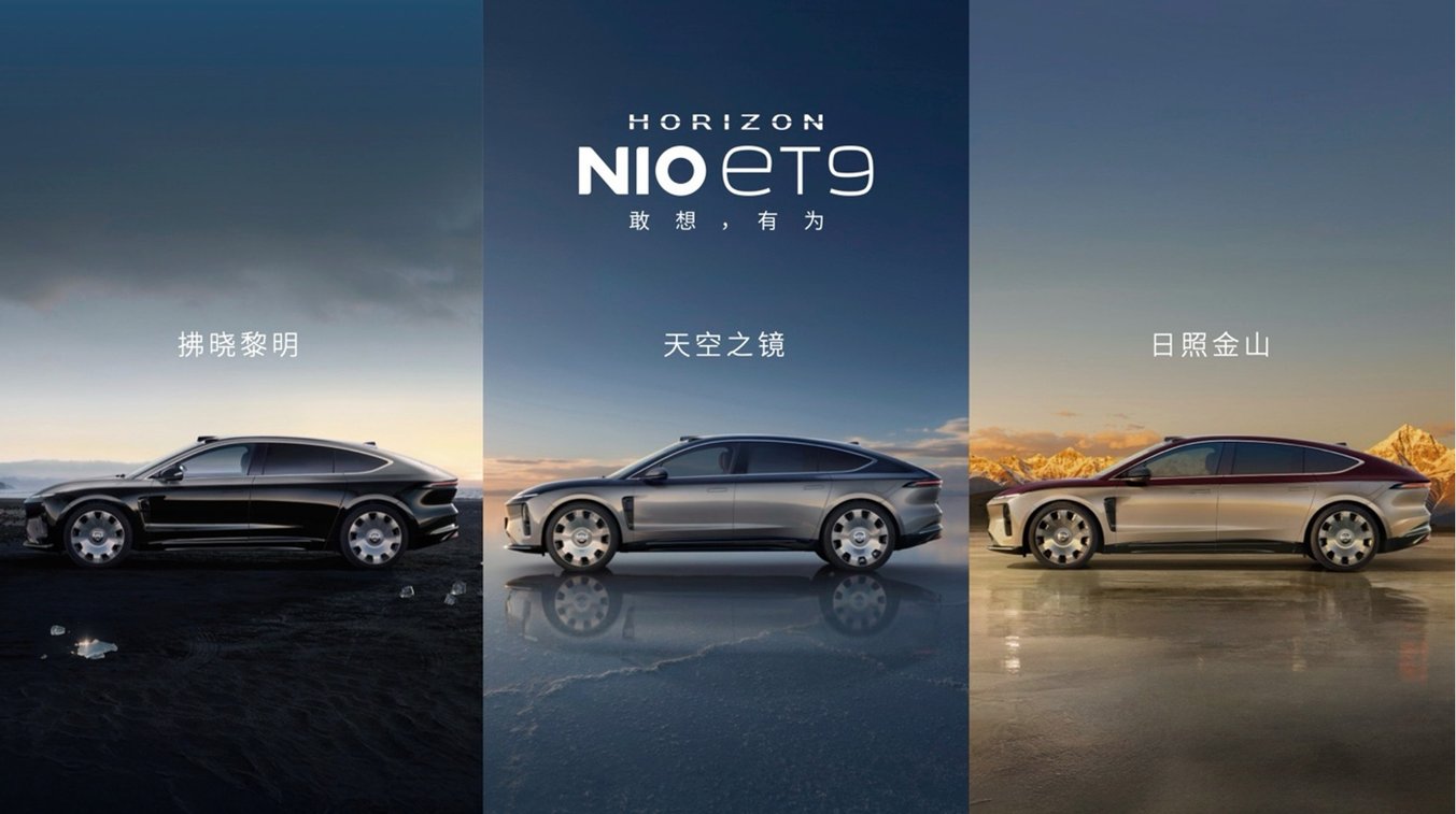 2016年11月,蔚来公司正式发布了NIO蔚来作为品牌名称,同时也发布了全新的品牌标识,其上半部分象征天空与愿景,下半部分代表大地与行动,而二者相接的「地平线」 寓意希望与新的开始。蔚来以两款ET9地平线特别版的全新色彩主题,向品牌精神致敬,也向所有「敢想,有为」的创新引领者致敬。