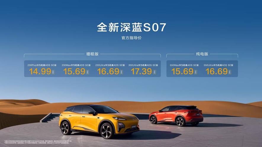深蓝S07和L07则配备了华为乾崑ADS SE系统,采用与高阶乾崑智驾ADS 4同源的WEWA架构,支持高速领航辅助和城区智能巡航功能。