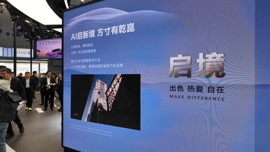 鸿蒙智行展台依旧车水马龙,但同时,问界、智界、尚界在不同展厅有独立展台,尊界与享界分别在江淮与北汽集团展台展示;此外,“境”字辈也开始登场,华为与广汽合作的启境就是其中最有代表性的。