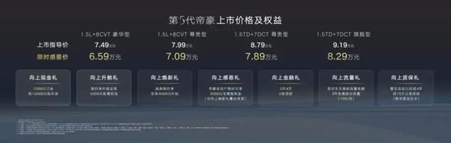 吉利帝豪家族历经四代迭代,凭借“造老百姓买得起的品质好车”的初心,收获了400万用户的信赖与选择。成就了国民家轿美誉!而第5代帝豪的推出,更是以跃升一代的产品实力,让国民家轿的体验一步到位。