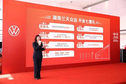 八城联动,一城一策——为庆祝湖南八店盛大开业,厂商携手推出面向湖南消费者的专属优惠政策,用最大诚意回馈客户。湖南兰天集团一汽大众品牌总毛晓艳现场宣布开业七重礼,充分体现“一城一策”的精准服务理念。随后,一汽-大众中南区域营销部业务负责人侯凯翔宣布区域加码礼遇,在店端政策基础上进一步提升用户权益,生动诠释了厂商与经销商携手并进、共创价值的生态共赢理念。