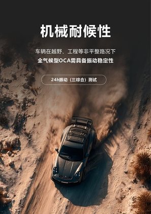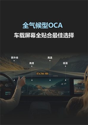 全气候型OCA能满足中控屏、副驾屏、液晶仪表、后排屏、HUD、电子后视镜等多种车载显示需求,确保在车辆全生命周期内显示系统稳定可靠。